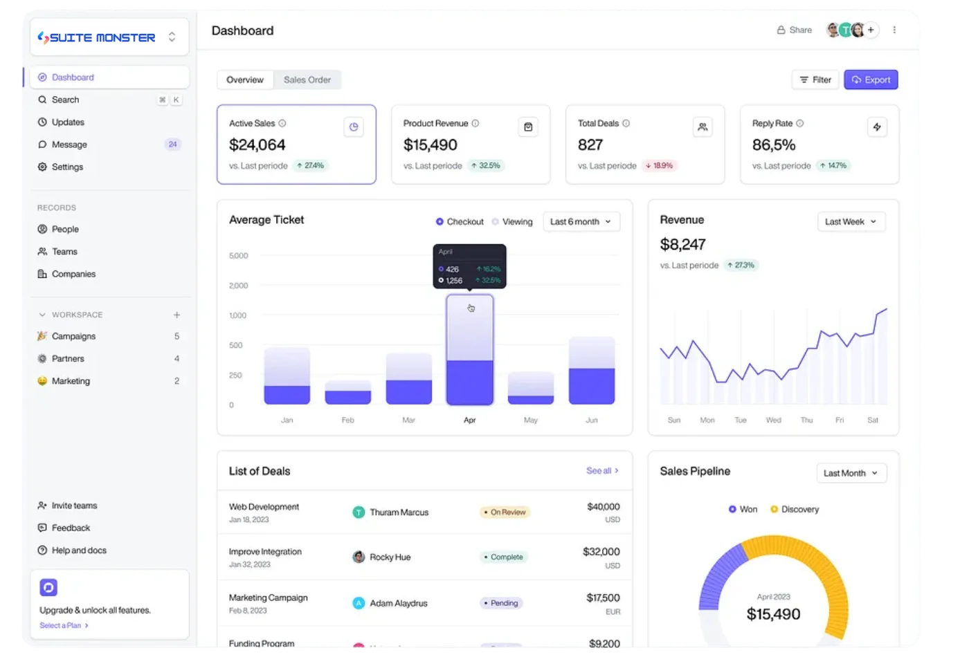 Manage your entire sales cycle, track client communication, and connect your projects, marketing activities and much more with a ERP and CRM that’s easy to use.